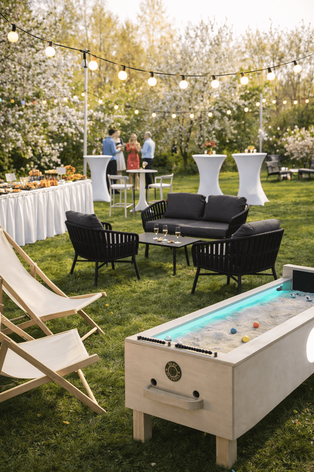 Enfin, l’ajout d’un élément comme le baby pétanque vient compléter l’installation en proposant une animation simple et efficace, parfaitement adaptée aux événements printaniers.