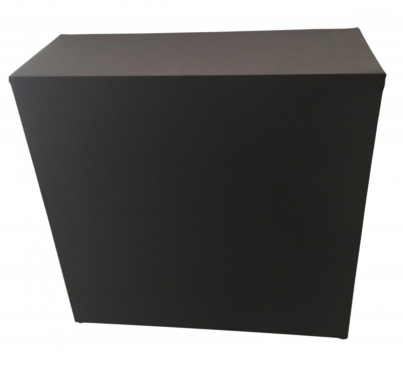 Habillage par HOUSSE TEXTILE stretch avec bande velcro sur l'intérieur pour une parfaite tenue sur la structure de la banque d'accueil.