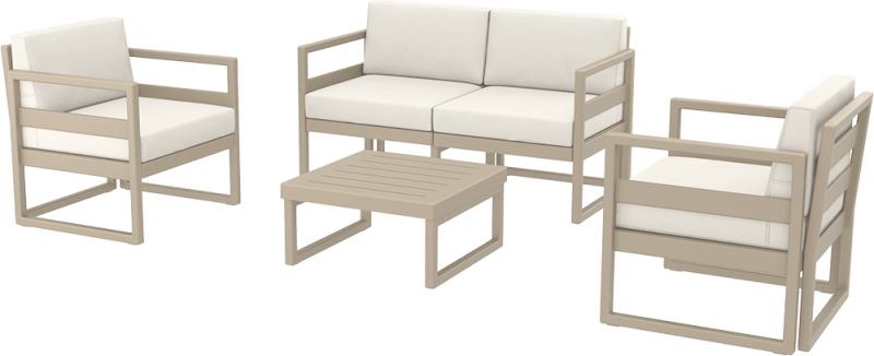 L'ensemble de salon Mykonos allie fonctionnalité et style pour créer des espaces de réception accueillants et confortables, tout en résistant aux conditions les plus exigeantes.