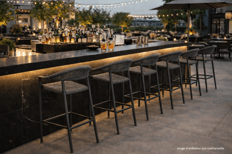 Le fauteuil de bar Roppy est conçu avec une structure en tubes aluminium et un cordage synthétique qui lui garantissent stabilité, durabilité et facilité de manipulation. Son style à la fois contemporain et chic permet une intégration facile dans différents style de décoration nature ou moderne. Existe également en version fauteuil pour une cohérence complète des espaces intérieurs et extérieurs.